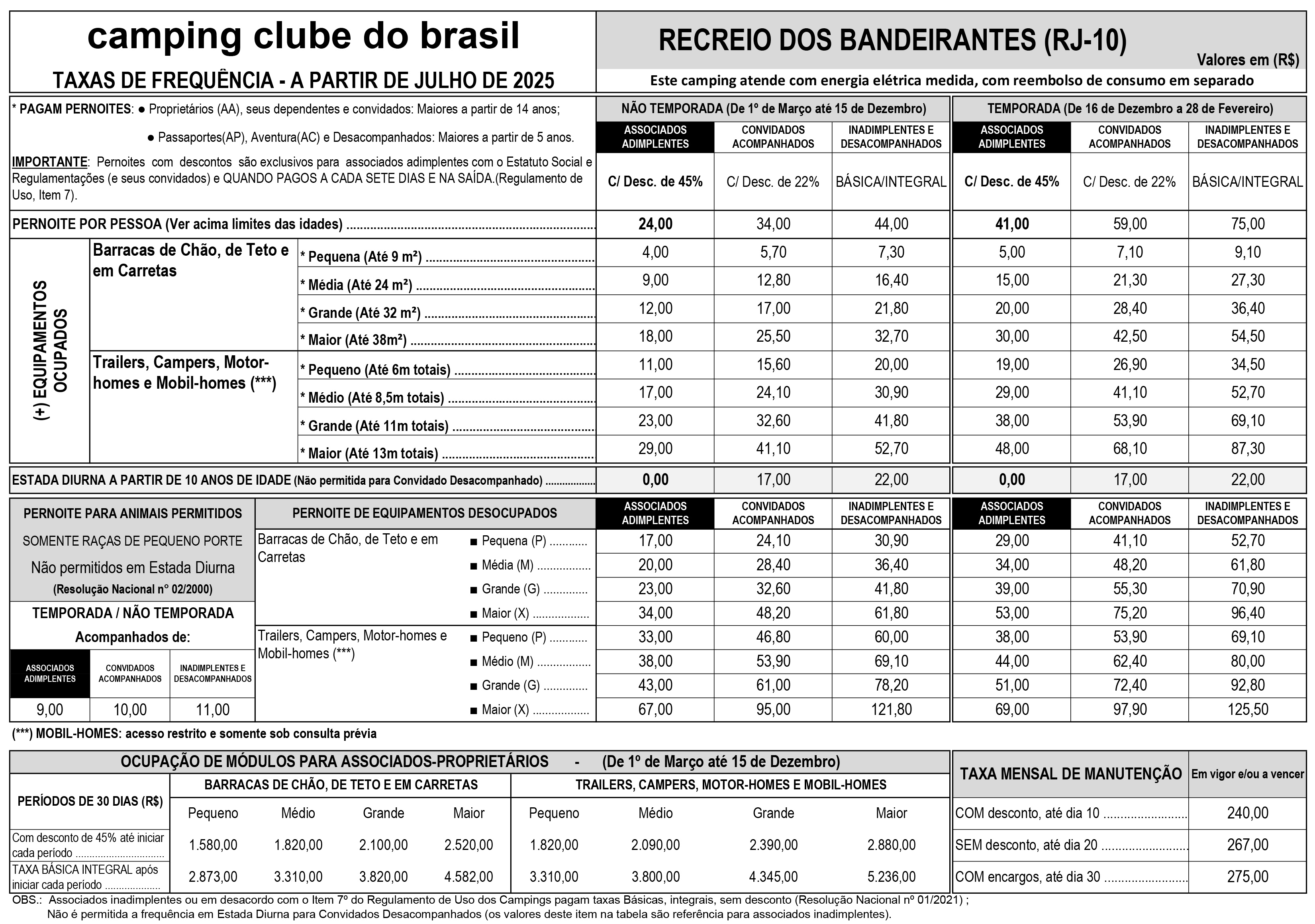 Instalações - padrão, luz para equipamentos (220v), chuveiros quentes, quadras de esportes, pavilhão de lazer, praia fronteira e play-ground.